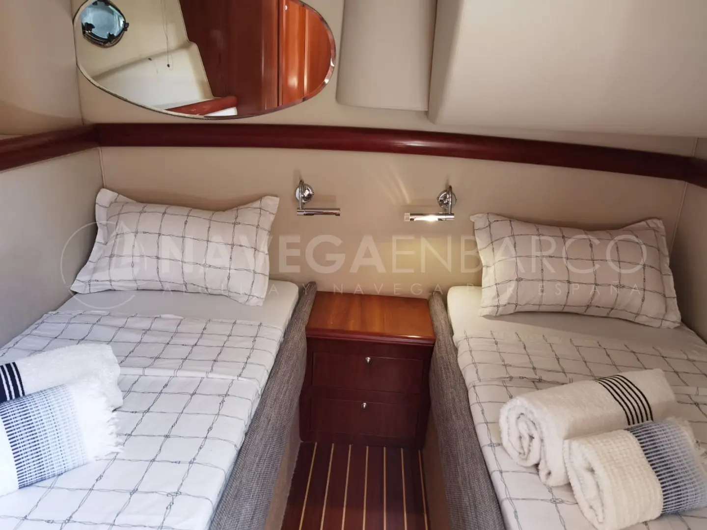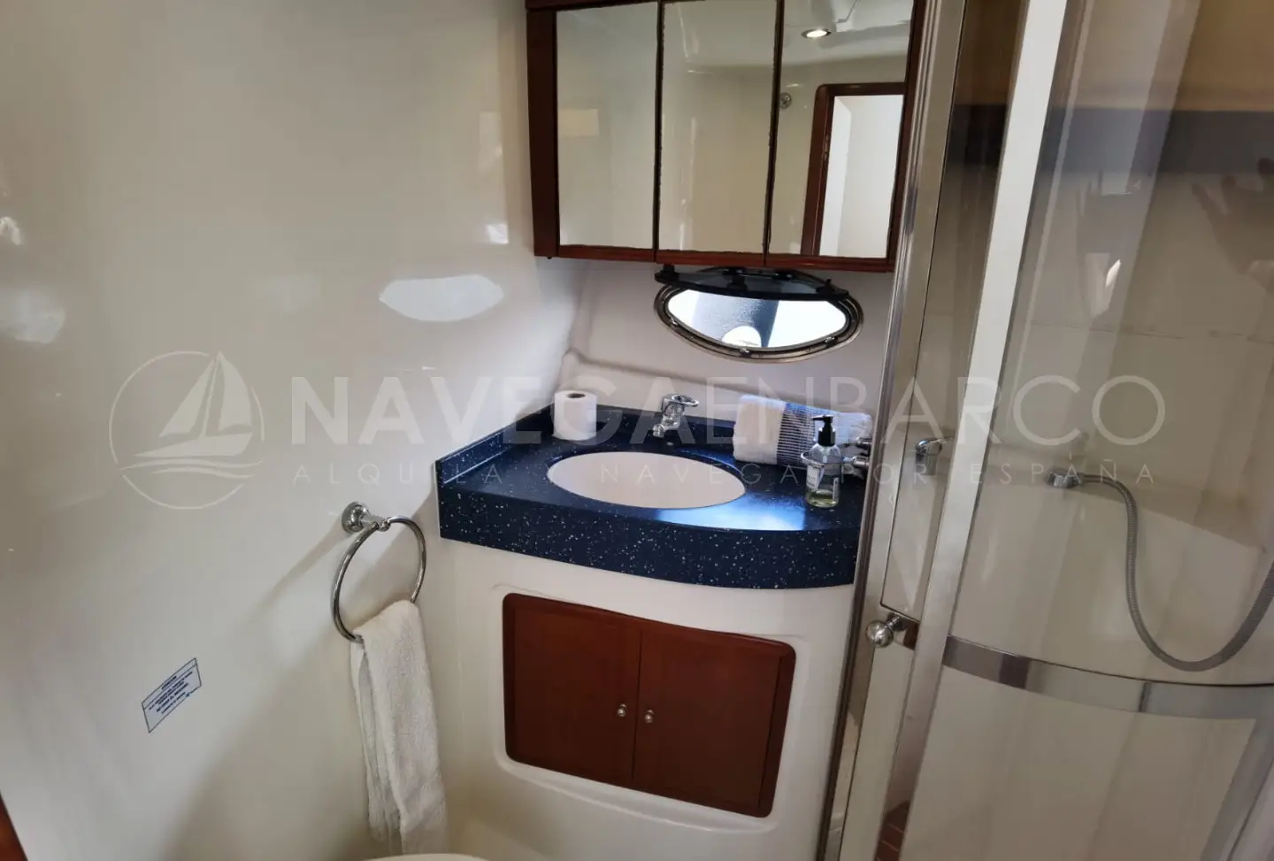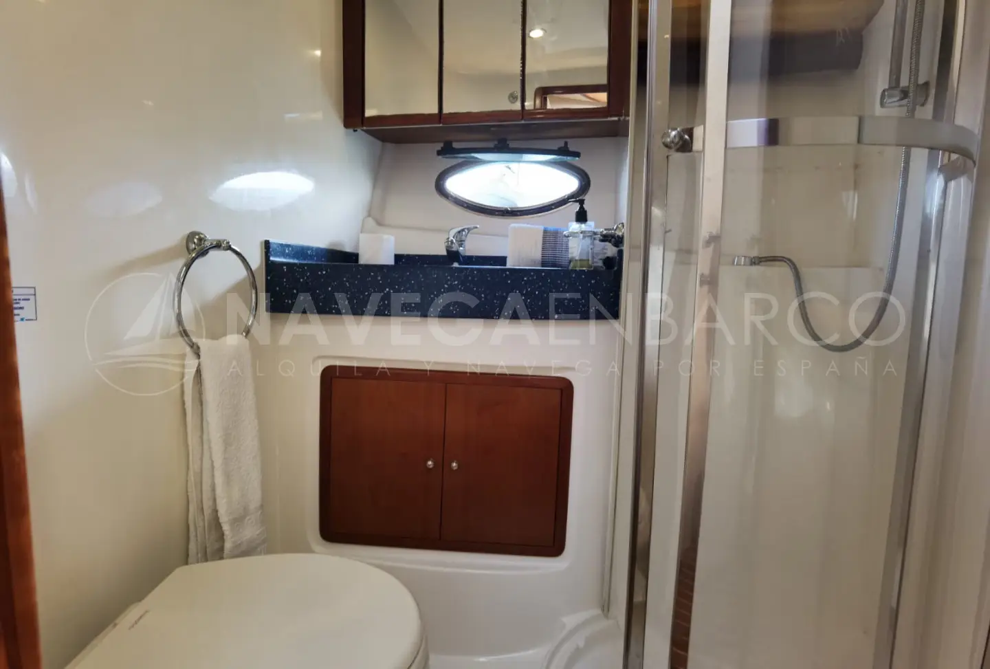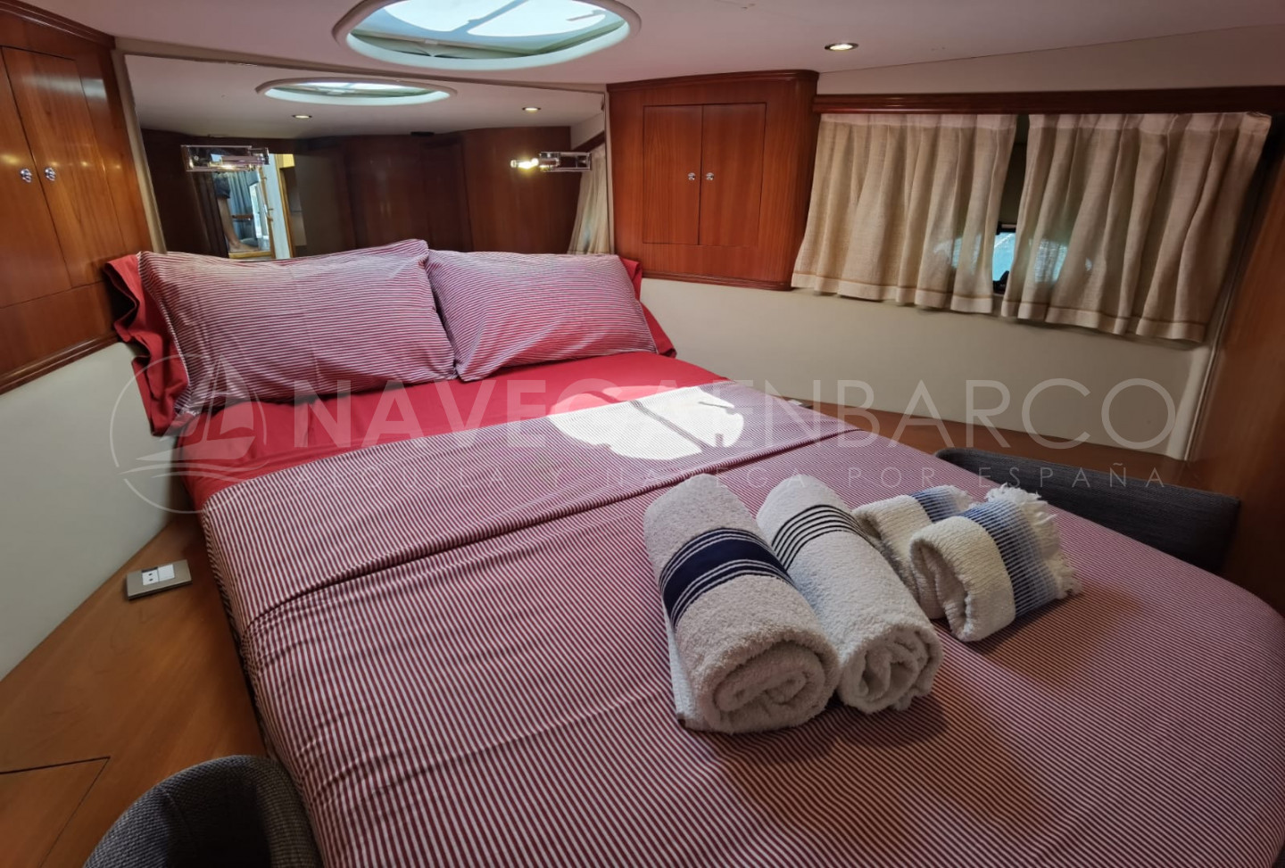 Habiendo sido sometido recientemente a una extensa reforma, y ofreciendo una gama de grandes espacios externos y una inteligente distribución interna, el Emily Grace ii es una gran manera de disfrutar de la costa alrededor de Mallorca y más allá con estilo y comodidad. El gran flybridge ofrece un punto de vista increíble, con muchos asientos alrededor de una mesa, así como un gran zona de tomar el sol. La zona de asientos de popa ofrece otro lugar para disfrutar de una cena al aire libre, y la cubierta de baño más grande de su clase en la parte trasera del barco es ideal para nadar o tomar el sol. Por su parte, el solárium doble de la cubierta delantera es un lugar ideal para relajarse. El interior está totalmente climatizado, con un generador que funciona incluso en el mar, y el generoso espacio de vida ofrece muchos asientos y una mesa, así como una cocina totalmente equipada. El camarote principal de proa tiene su propio aseo/ducha, y hay un segundo compartimento de aseo/ducha para los otros dos camarotes de invitados, lo que significa que 6 personas pueden dormir cómodamente a bordo en literas permanentes, tanto si navegan de puerto en puerto por las Baleares, como si utilizan Port Adriano como base para explorar tanto la costa mallorquina como la propia isla. Estamos deseando dar la bienvenida a nuestros huéspedes a bordo del rodman41 y ofrecerles una maravillosa experiencia en el mediterráneo.