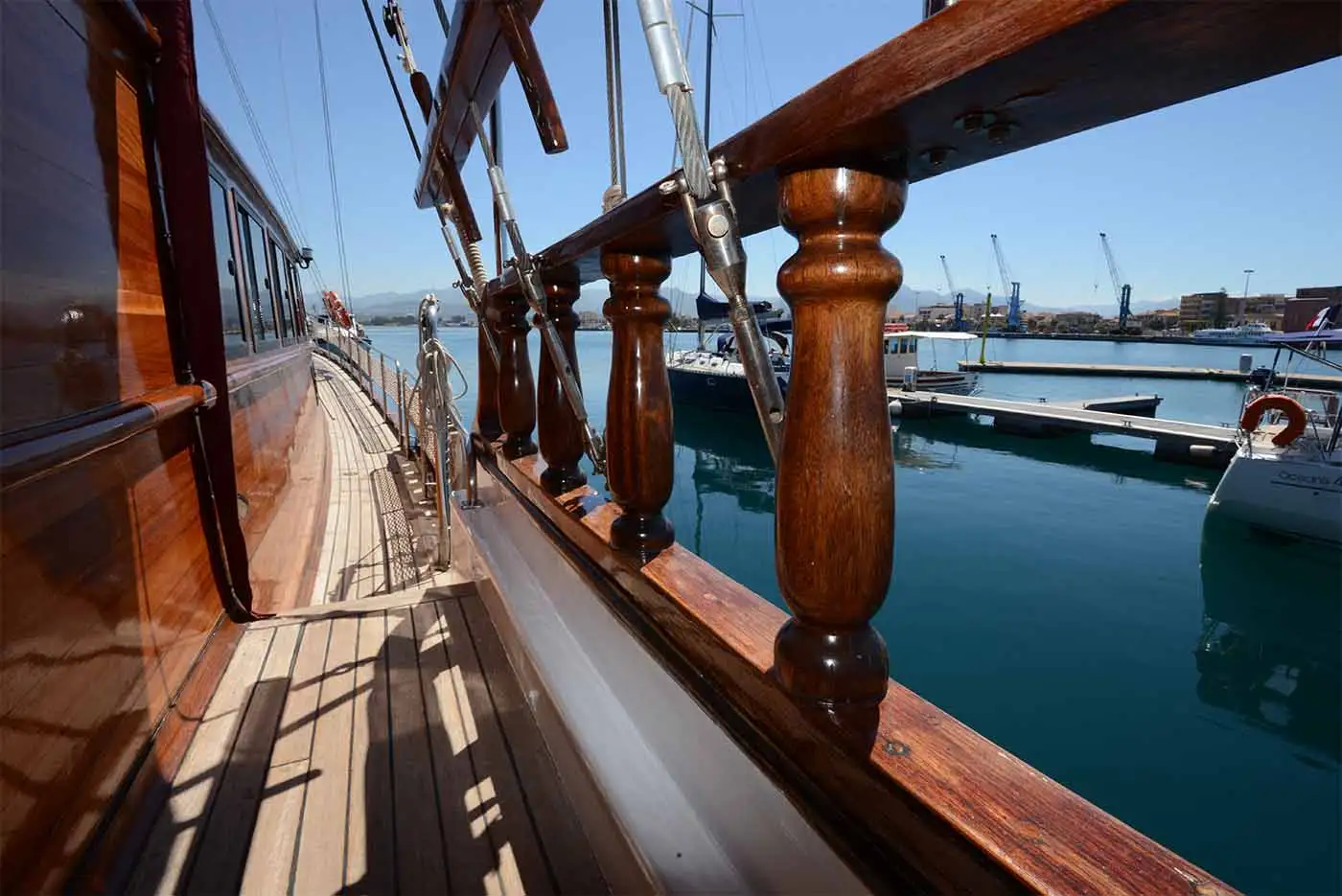 Magnífica embarcación Sundial (Cabin 5), situada en el Porto Santa Maria Maggiore, con una eslora de 23.5 m y manga de 6.25 m.