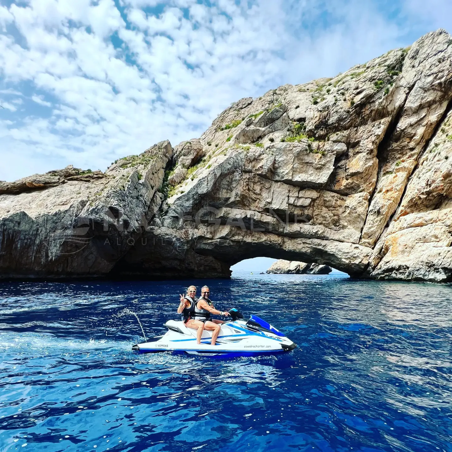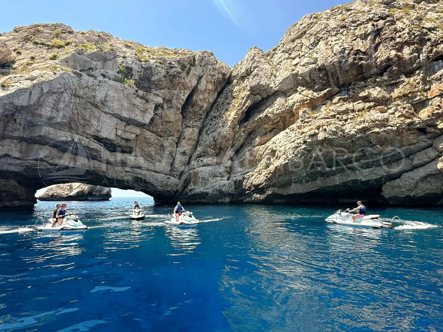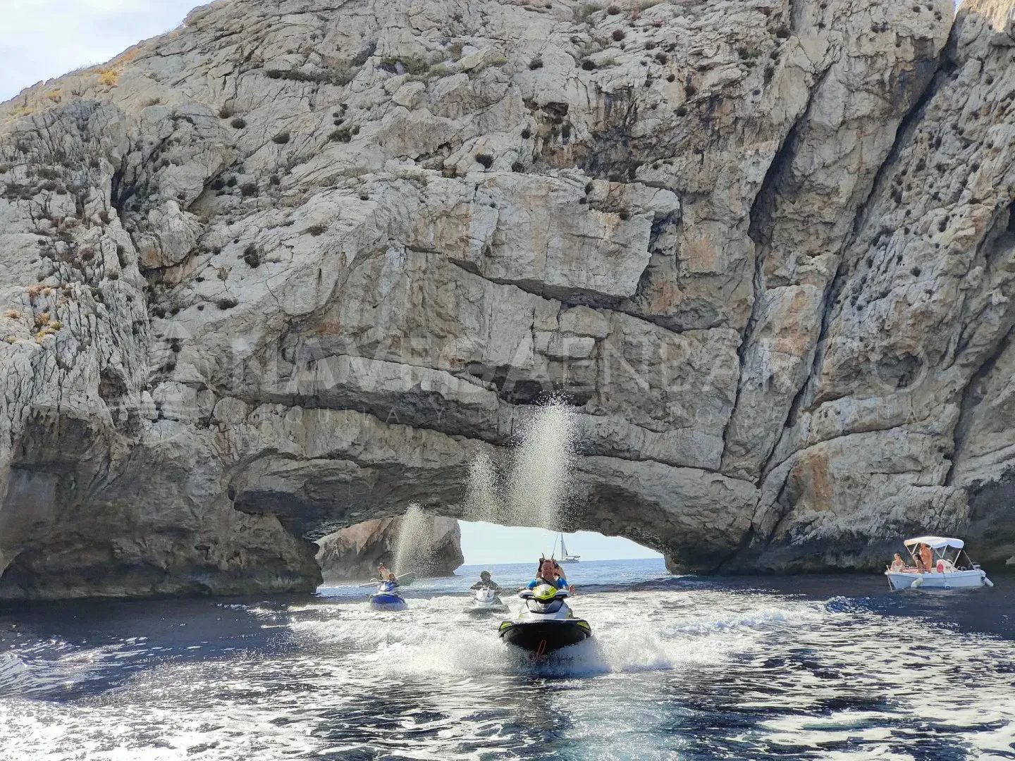 Rumbo a la costa norte de Ibiza, este tour en moto de agua te permitirá conocer las Islas Margaritas; se tratan, de dos islotes que encontramos cuando atravesamos el Cap Negret. El acceso es únicamente con embarcación, lo que nos permitirá disfrutar de magníficos escenarios naturales de acantilados y calas escondidas que iremos encontrando durante el tour. El islote grande denominado Ses Margalides tiene forma de herradura, está vistosamente atravesado por un arco que muchas embarcaciones no dudan atravesar