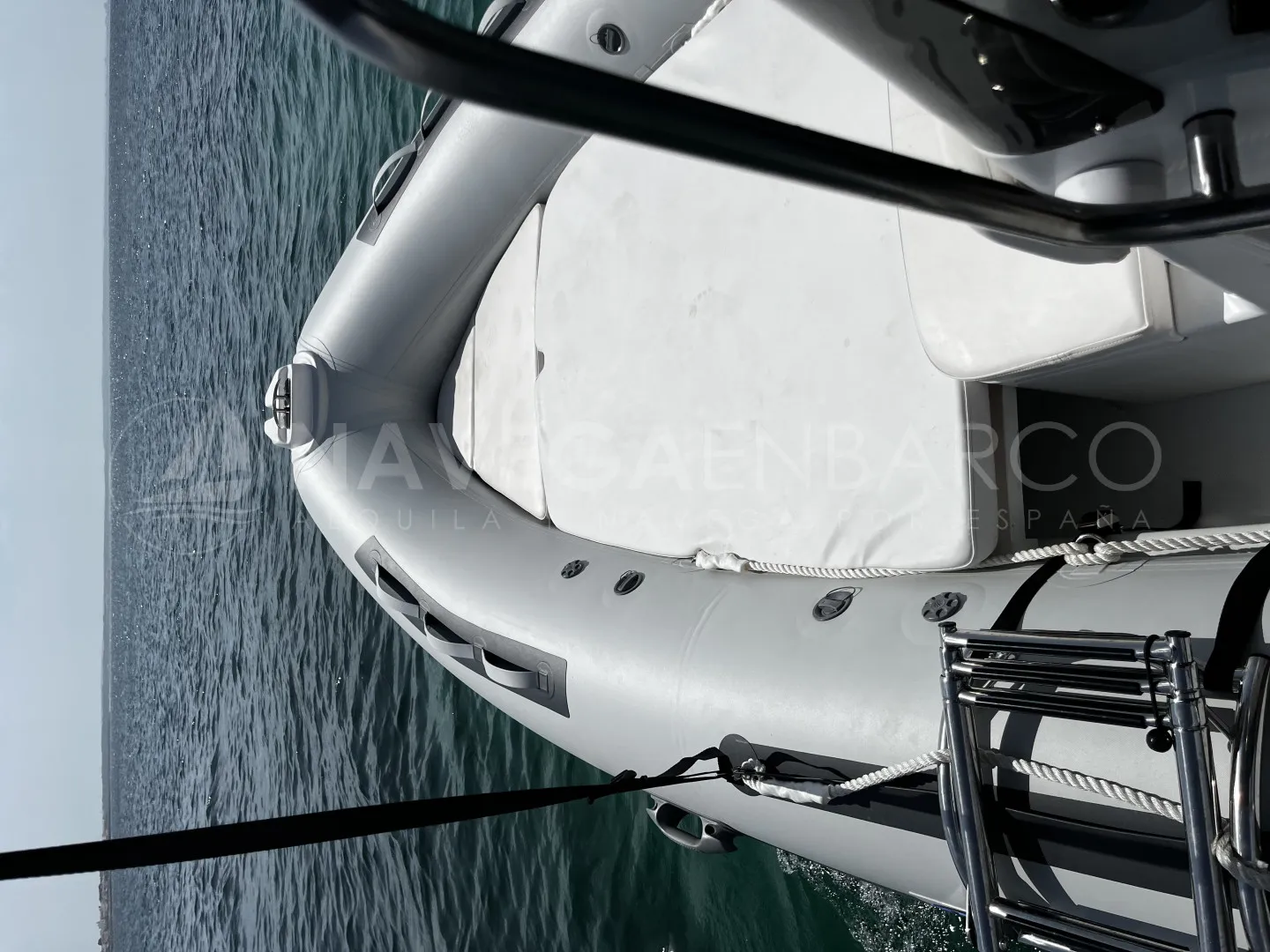 Amplio solárium de proa, toldo bimini, nevera, radio con bluetooth, conector de 12v, escalera de baño.