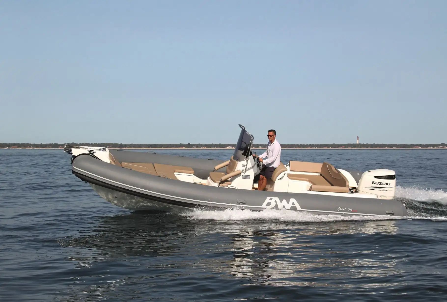 El motor Suzuki DF 200 cv., posiblemente el mejor de Suzuki en cuanto a la relacion de potencia/rendimiento/consumo permiten navegar con un mínimo consumo de combustible. Como su hermana mayor la BWA Sport 28 GT tiene un diseño de corte deportivo ya la vez con clase, es un barco muy bonito. La potencia de 200 cvpermite navegar de forma rápida, ya la vez con un consumo muy reducido comportamiento extraordinario.