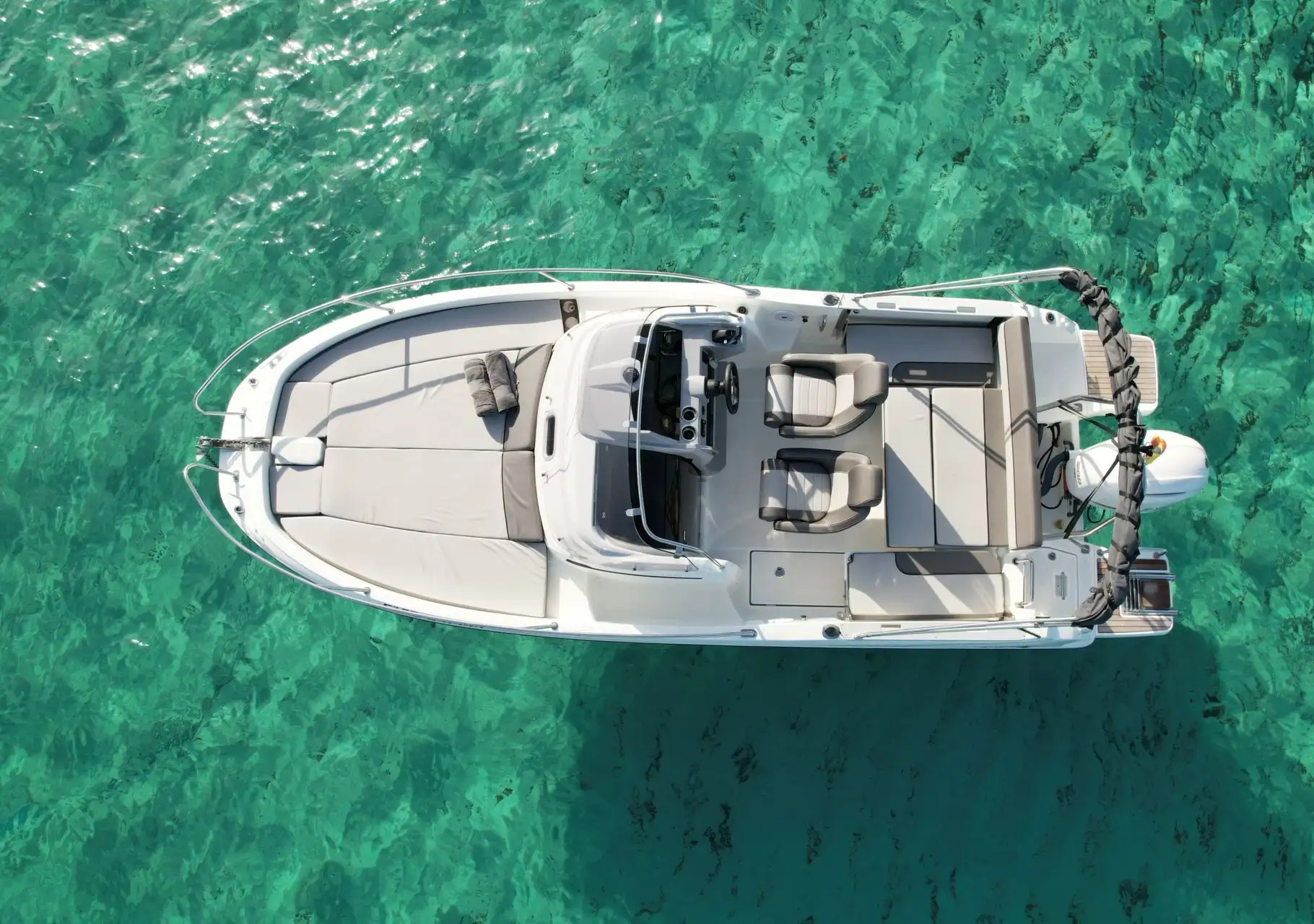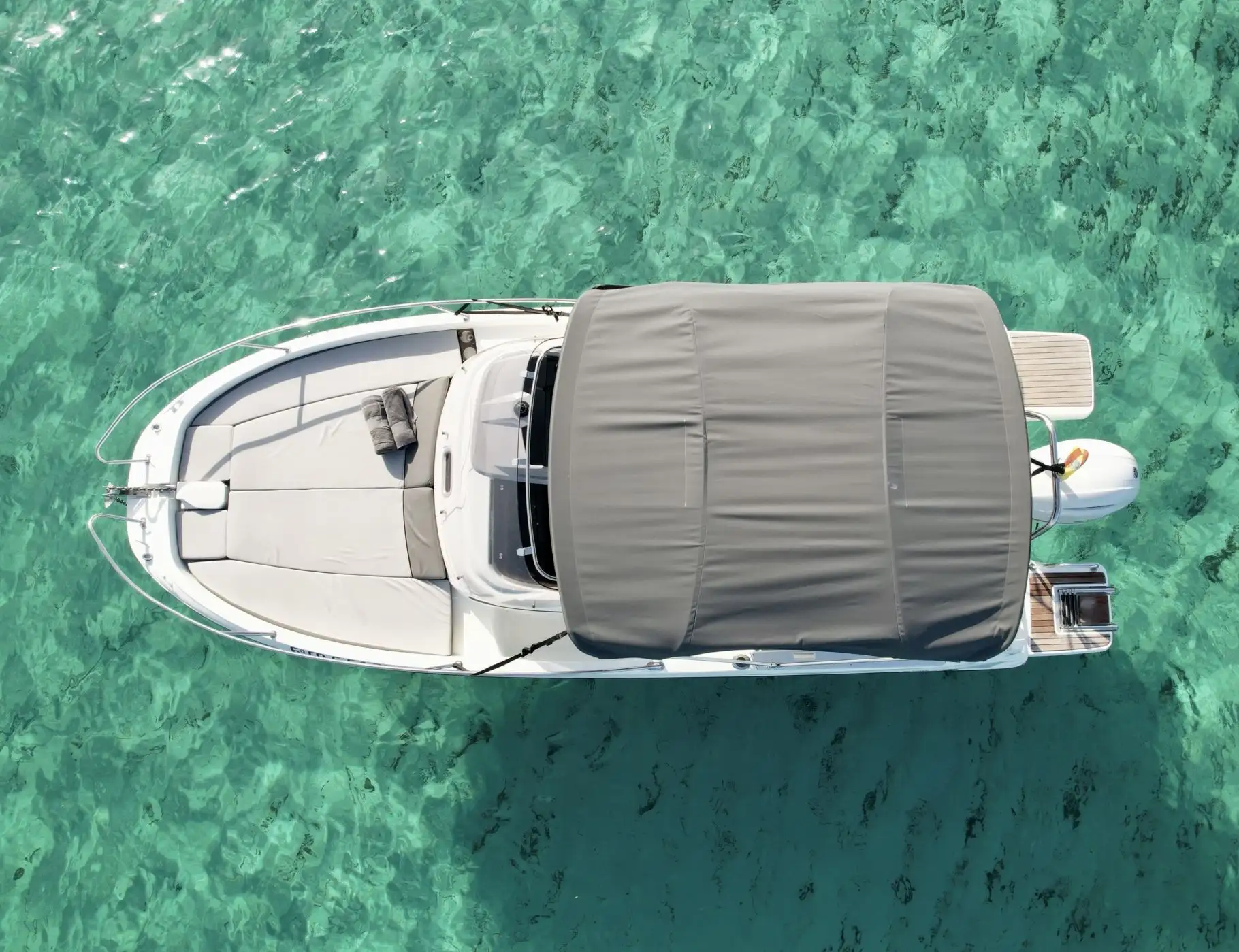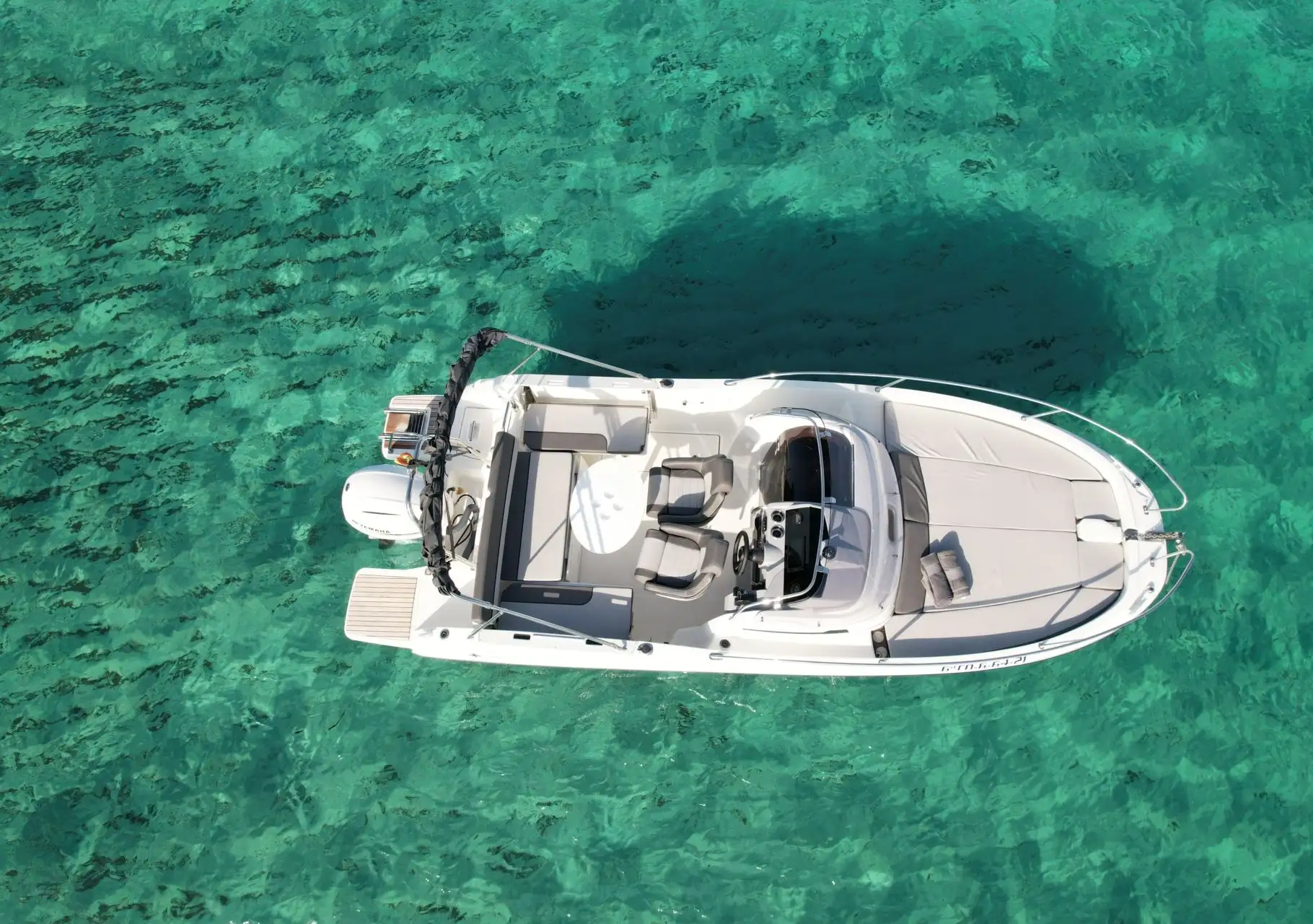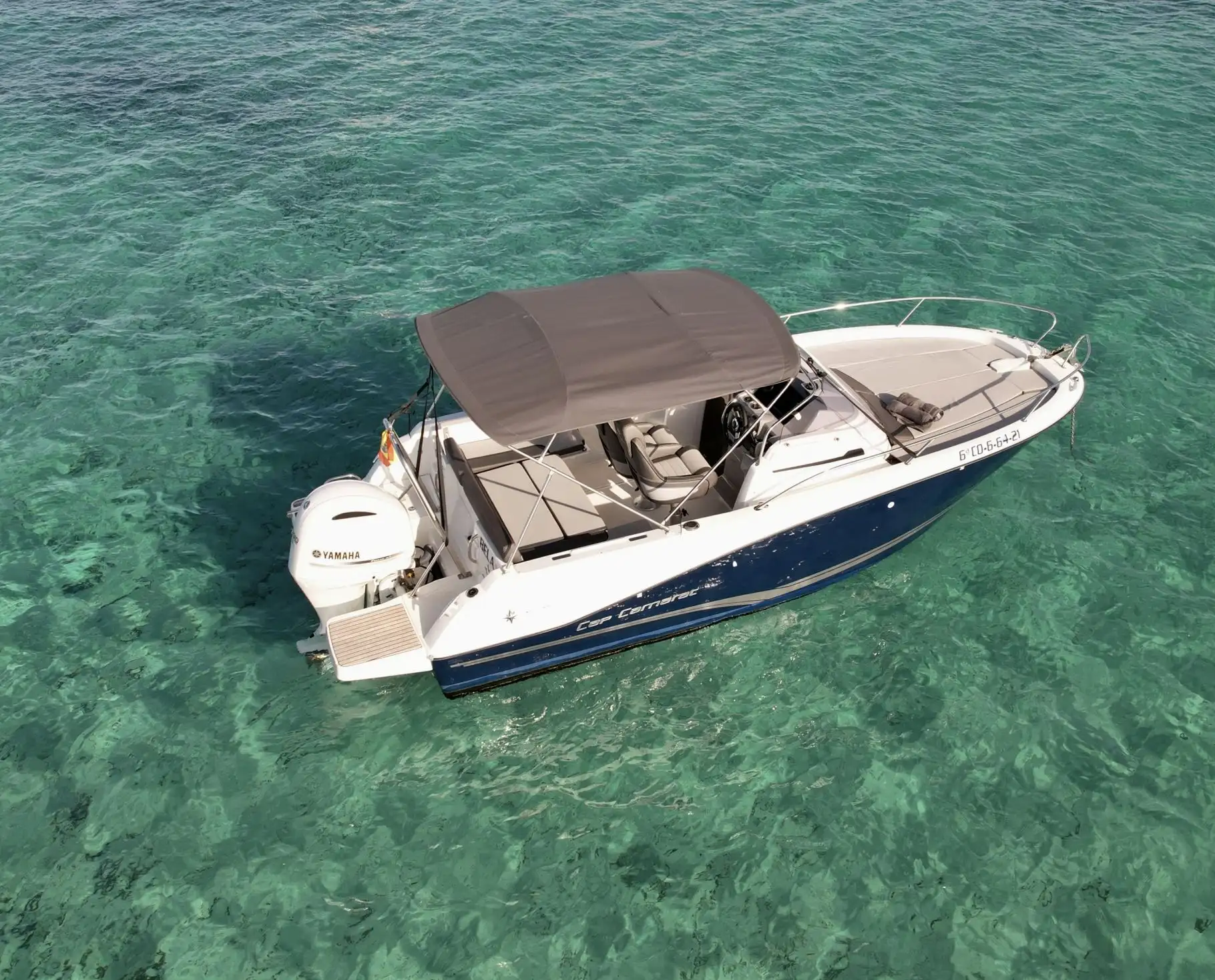 Este maravilloso barco tiene la opción de alquiler con patrón o sin patrón. La fianza con patrón es de 350€ y sin patrón son 2.000€.