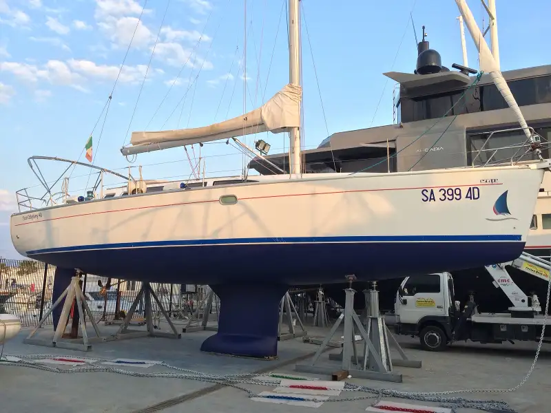 Magnífica embarcación Escape, situada en el Salerno, con una eslora de 13.21 m y manga de 4.19 m.