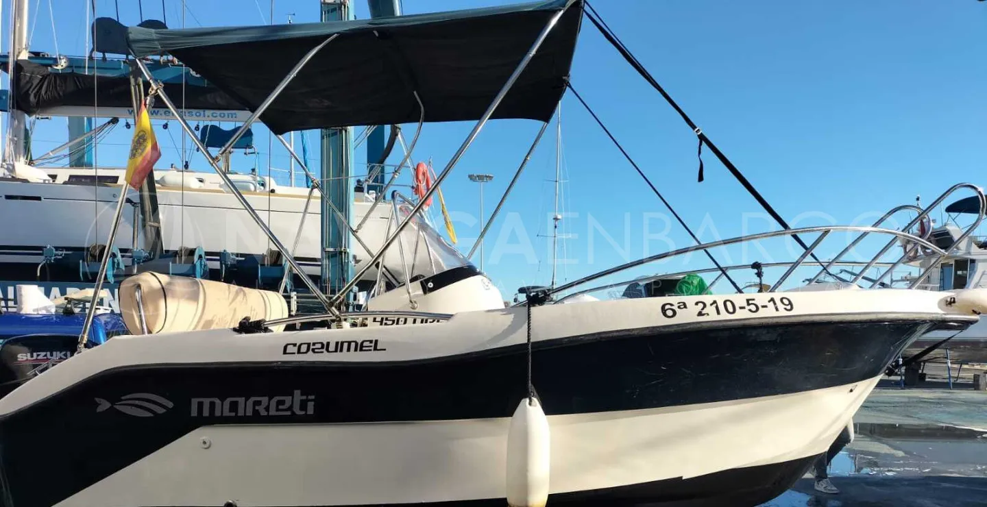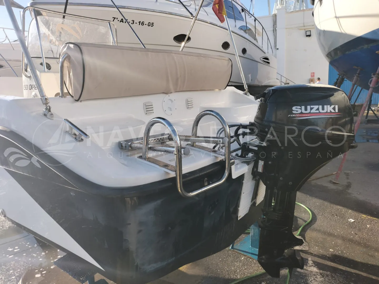 Embarcacion de 4.50 metros de eslora y 2.10 m de manga con gran estabilidad para una inmejorable navegación, con motor suzuki y capacidad para 5 personas.