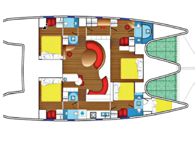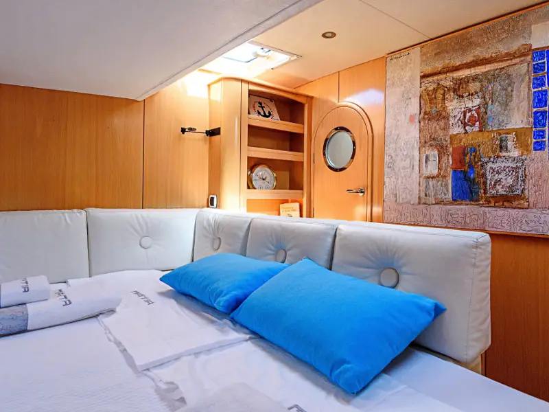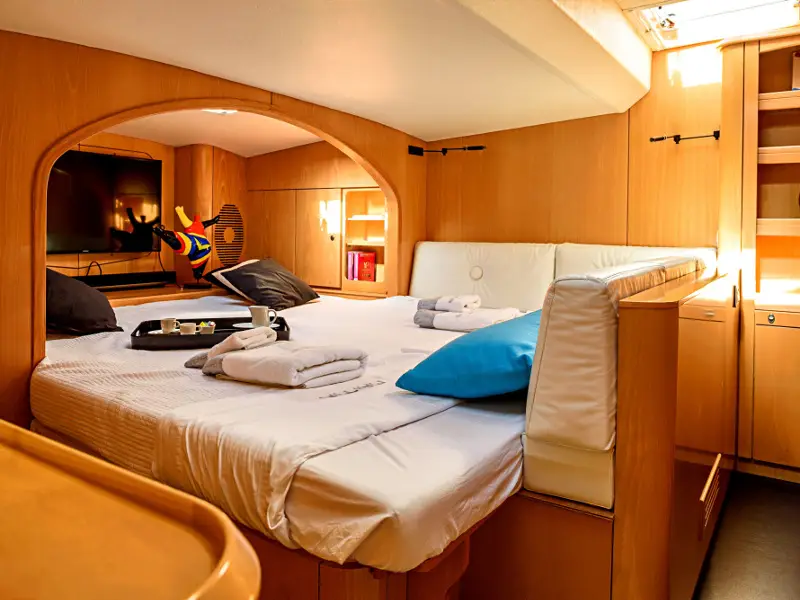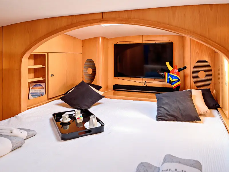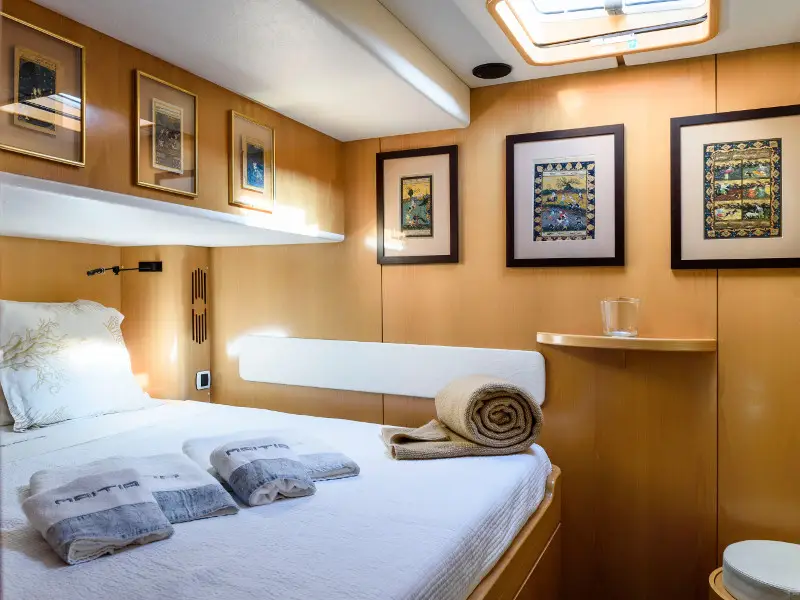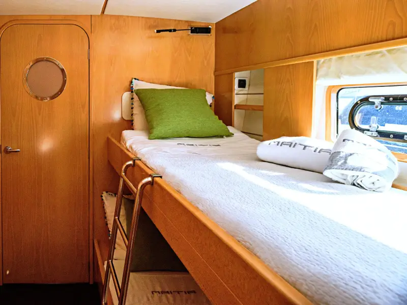 El barco tiene 4 cabinas, en las cuales encontraremos 8 literas para nuestro descanso.