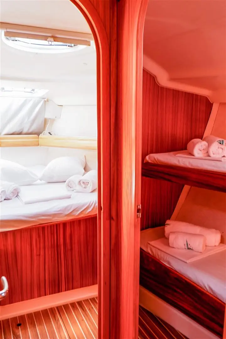 El barco tiene 4 cabinas, en las cuales encontraremos 10 literas para nuestro descanso.