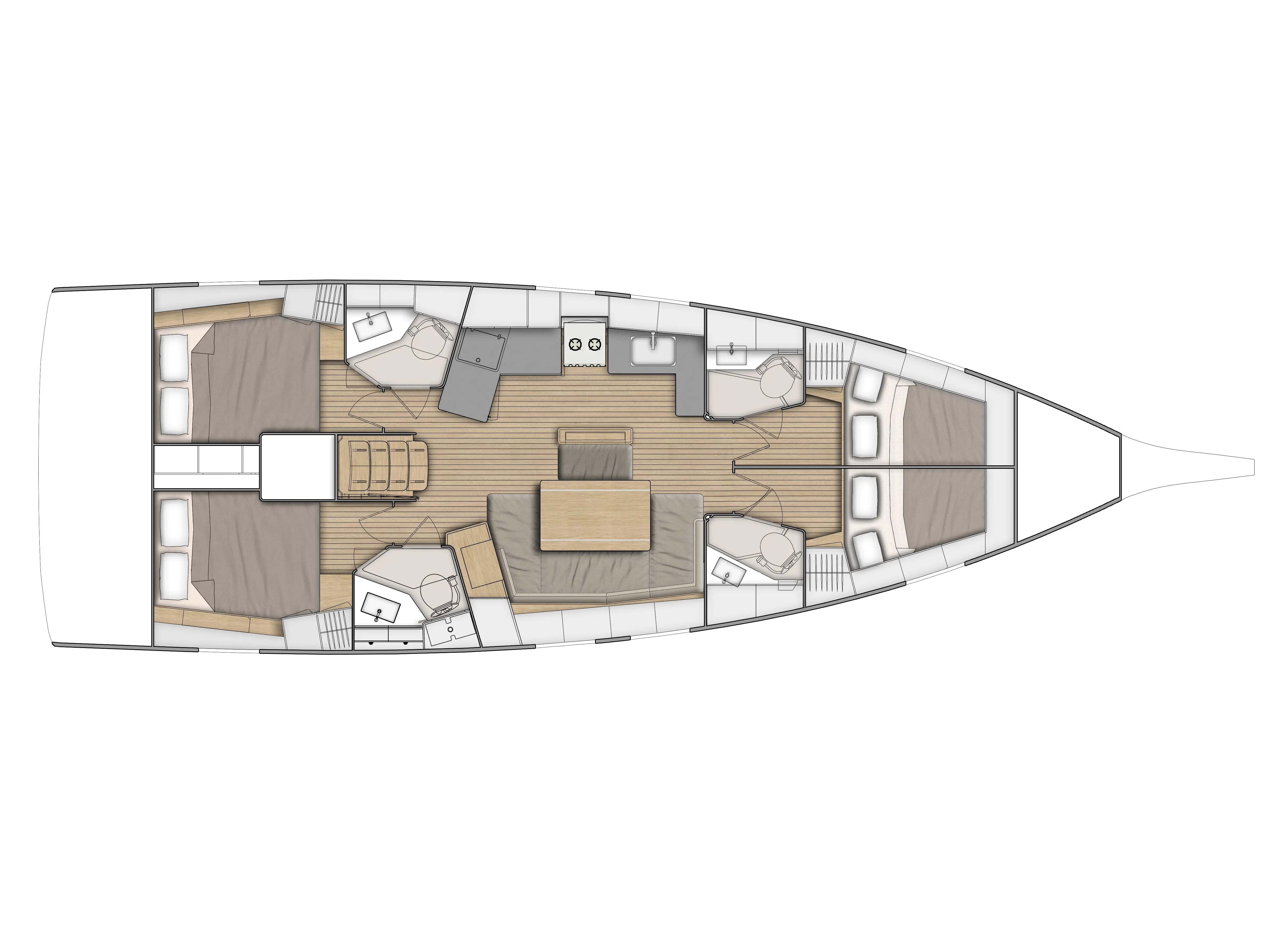 El barco tiene 4 cabinas, en las cuales encontraremos 9 literas para nuestro descanso.