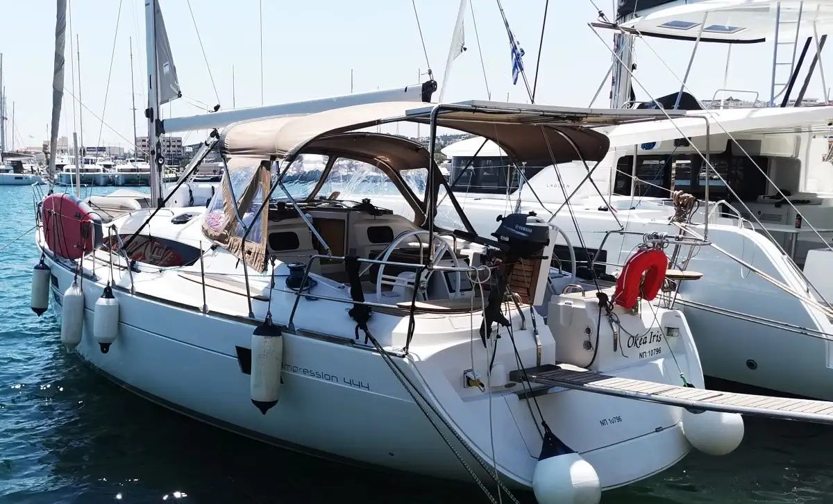 Magnífica embarcación Okea Iris, situada en el Lavrion Main Port, con una eslora de 13 m y manga de 4.2 m.