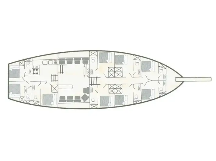 El barco tiene 9 cabinas, en las cuales encontraremos 18 literas para nuestro descanso.