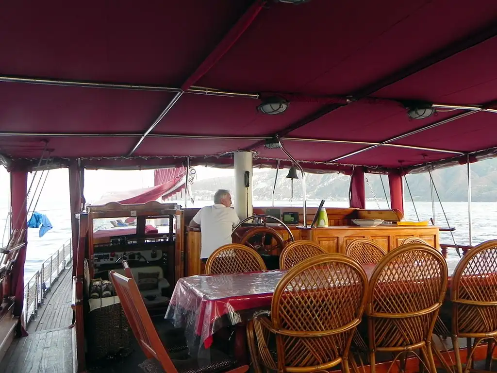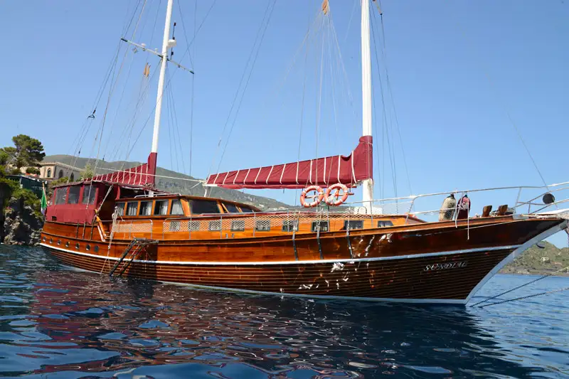Magnífica embarcación Sundial (Cabin 4), situada en el Porto Santa Maria Maggiore, con una eslora de 23.5 m y manga de 6.25 m.