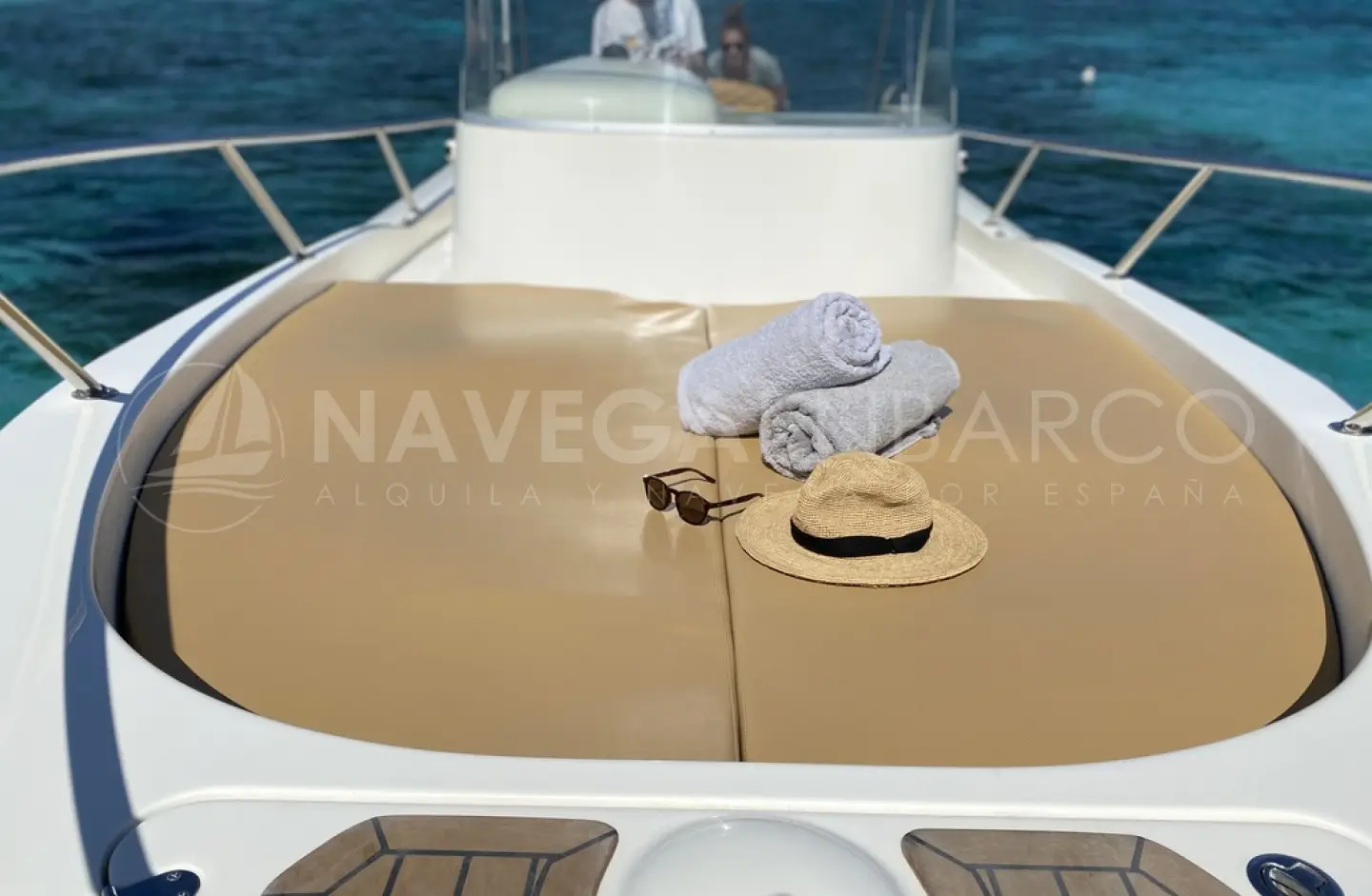 SkipperFantástica lancha neumática de la gran firma italiana Capelli. Con una capacidad de hasta 11 personas y un amplio solárium en la proa, es perfecta para vuestros mejores días en Ibiza y Formentera. Cabina cubierta, con WC. Es muy espaciosa y bien distribuida. Esta neumática destaca por su robustez y calidad de sus acabados. 9 metros de largo y 3,15 metros de manga, GPS, ducha en popa, música con bluetooth, bimini en popa. Este barco navega de una manera increíble, además se puede alquilar con o sin capitán y tiene un consumo muy reducido para su gran potencia de motores.